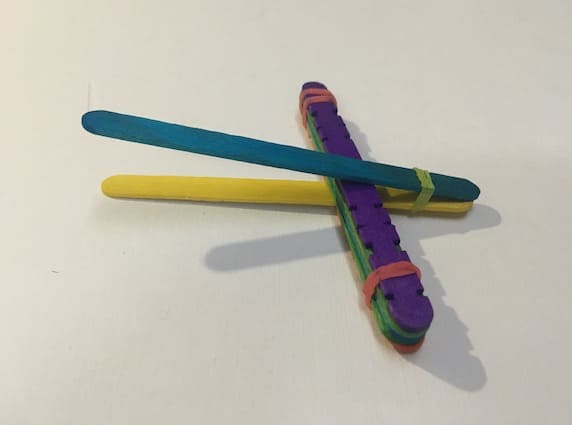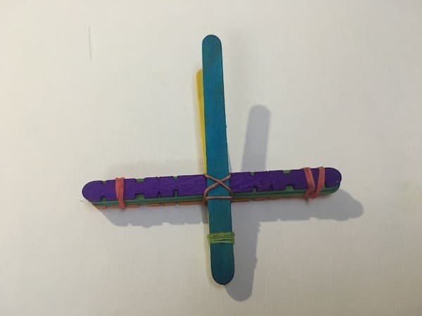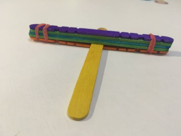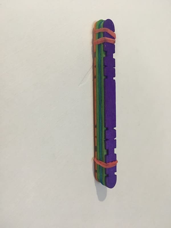 Step 4: Secure the assembly with a rubber band so as to hold all the popsicle sticks together.